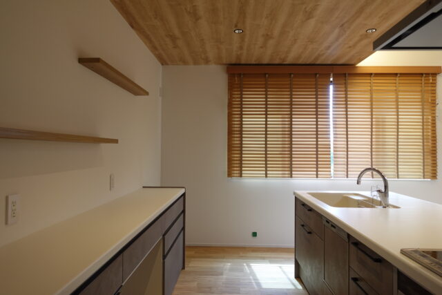 また、フラップ式の吊り戸棚も人気のスタイル